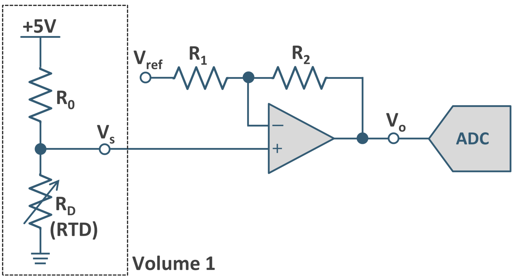 In this application, the worst case analysis for the temperature sensor interface circuit is performed. The circuit consists of a thin film Resistance Temperature Detector (RTD), op-amp and other passive devices in order to convert temperature to voltage and adjust voltage to the input voltage range of AD converter. This worksheet shows the analysis to obtain the maximum and minimum output voltage from the temperature sensor circuit as volume 1.
