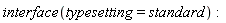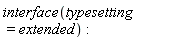 The Typesetting  package contains the code by which Maple translates "2D math" notation to the original linear text form of its commands. Within the package, the Settings , Suppress , and Unsuppress  commands are used to effect changes in the display of partial derivatives. In addition, the typesetting "level" must be changed from the default standard to extended. The use of these commands and options is summarized in Table 2.