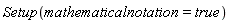All the conventions for a given computation can be easily set using a compact and versatile interactive assistant. In order to perform this extension of the computational domain, a set of conventions for distinguishing between commutative, anticommutative and noncommutative variables, 3-D vectors, tensors, etc. are established. An advanced default setup of conventions is loaded when you load the Physics package. You can change these conventions using the Setup assistant.