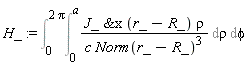 The expression for  can be entered as a double integral in cylindrical coordinates (); the element of the surface of a disk in these coordinates is , with  varying from 0 to a and  from 0 to  .