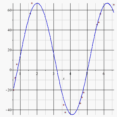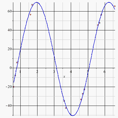 Clearly, the curve does not fit the data. Experiment with different values of f until you find a function that is close to the data points. Try a value of 1.5.