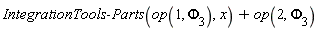 Table 2 lists several ways that the Parts command could be applied just to in expression . Each requires that the integral to which Parts is to be applied can be singled out by some distinguishing feature. In the first method, the evalindets command is used to place the Parts command onto the operand of that is of Maple type `*`, that is, a product. The operands of are identified by applying the op command, as in