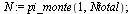 This worksheet calculates the value of Pi via a multi-threaded (and a single-threaded) Monte-Carlo algorithm. Ntotal darts are randomly thrown at a unit square inscribed with a circle, and the number N that land within the circle are counted. The value of Pi is