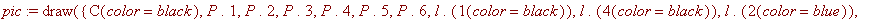 Let's make coordinates 6 randpoints P.i of circle C and the lines l.i through of points recommanded sequence and . and are element of by permutations generated points.
