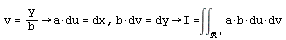 Debemos calcular el Jacobiano de la transformaci?n abs(`/`(`*`(`∂`(x, y)), `*`(`∂`(u, v)))).Primero debemos encontrar, de la transformaci?n, x e y en funci?n de u y v: