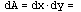 Donde podemos ver que el ?rea del cuadrado es dA = `*`(dx, `*`(dy)).