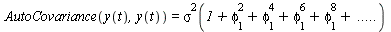 The AutoCovariance for y(t) and y(t) at time t is therefore given by: