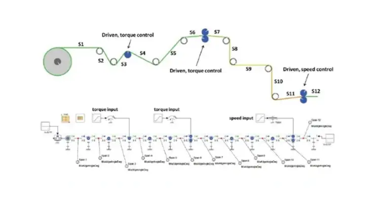 Winding and unwinding systems are typically part of transporting R2R product before and after converting processes. Even with thin materials such as plastic films or precision products, the winding roll quickly increases in diameter, especially for fast web flows over 2000fpm. Usually, the rewind torque needs to be varied as the diameter of the roll builds up in order to maintain tension. For this greater control, dancers or closed loop controls can be used.
