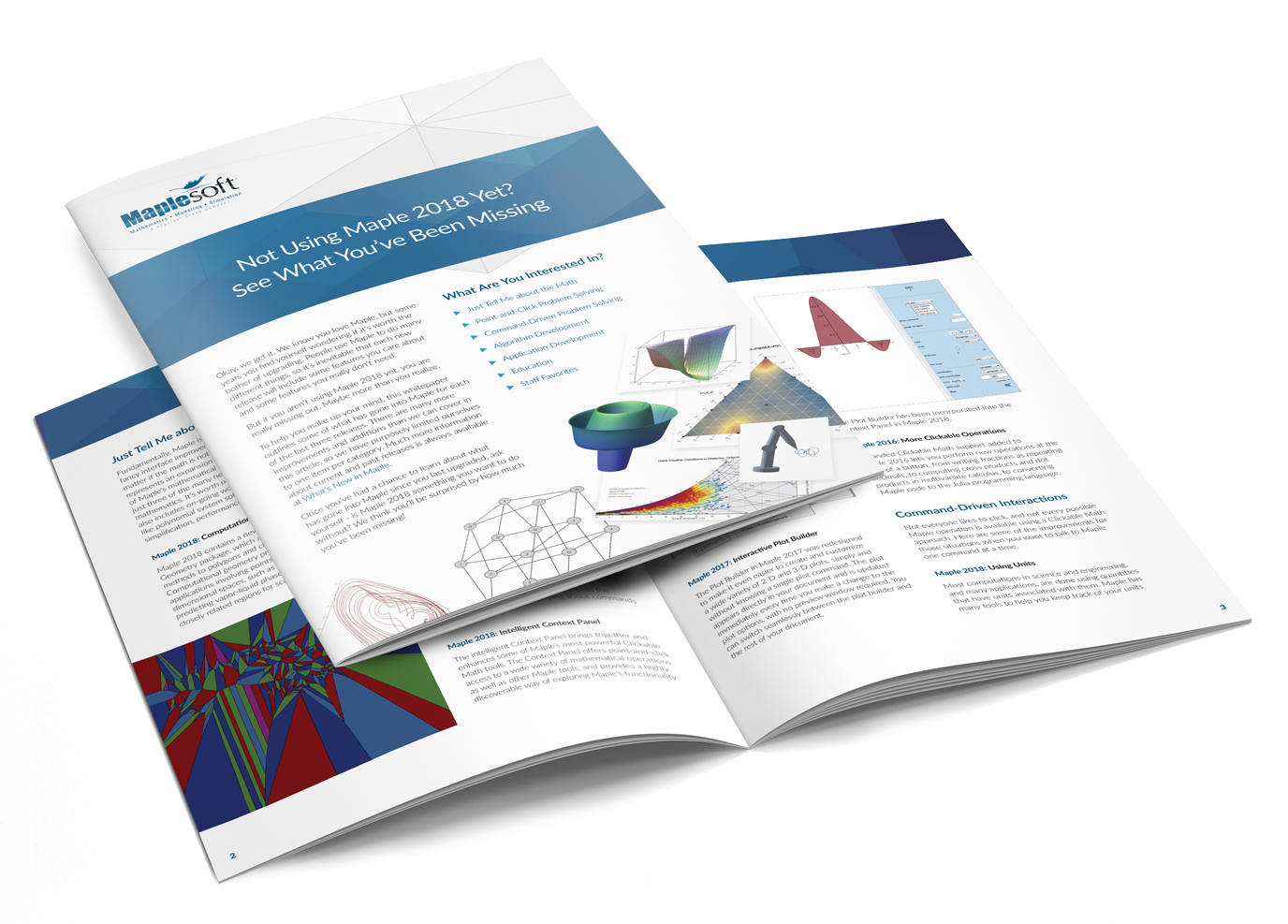 To help you make up your mind, this whitepaper outlines some of what has gone into Maple for each of the last three releases. Once you’ve had a chance to learn about what has gone into Maple since you last upgraded, ask yourself - is Maple 2018 something you want to do without?