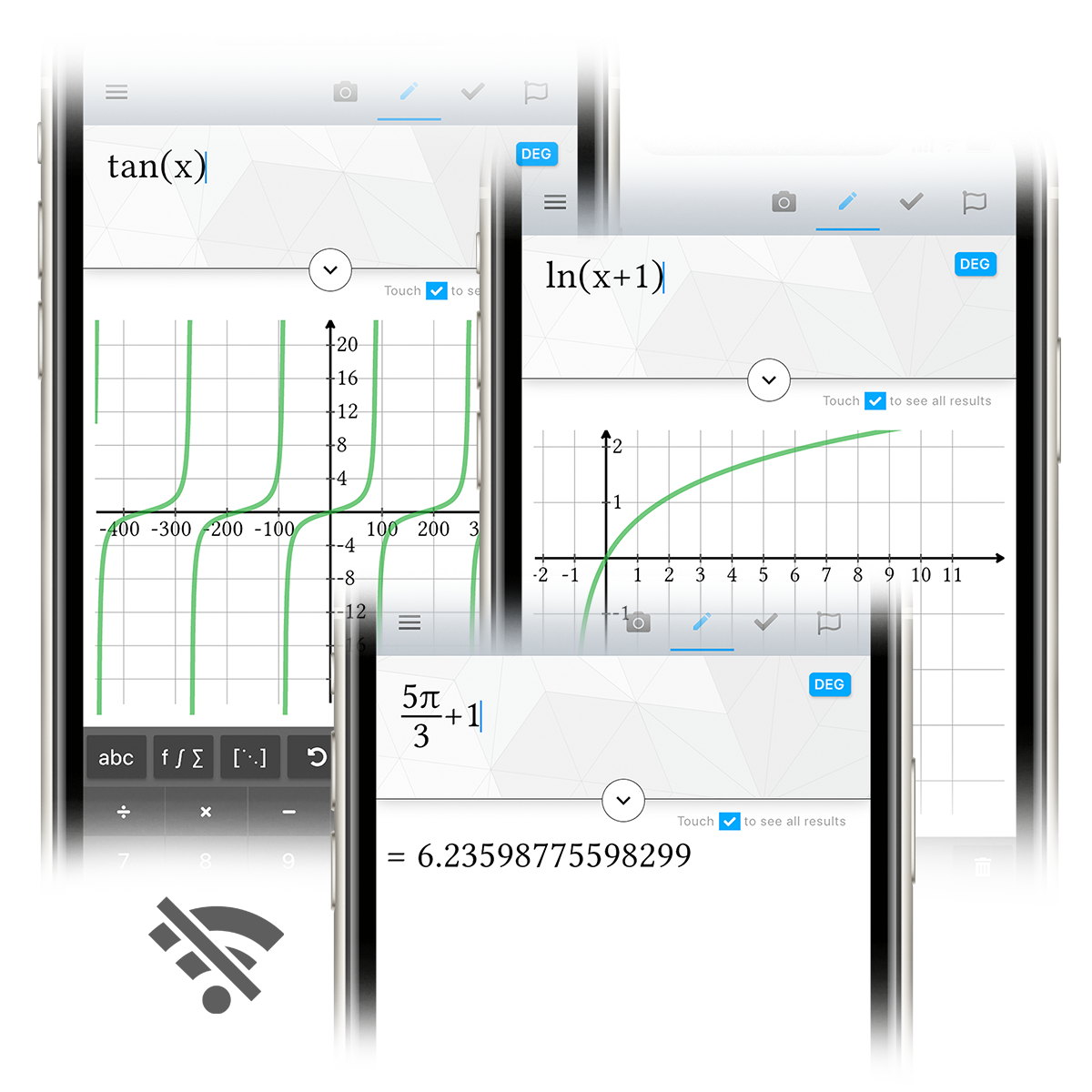 Some aspects of the app require an internet connection, but you can use the powerful graphing calculator anytime!