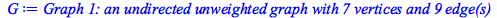 Typesetting:-mprintslash([G := `Graph 1: an undirected unweighted graph with 7 vertices and 9 edge(s)`], [GRAPHLN(undirected, unweighted, [1, 2, 3, 4, 5, 6, 7], Array(%id = 18446746447075703734), `GRA...