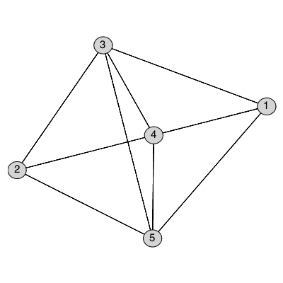 Typesetting:-mprintslash([G2 := `Graph 3: an undirected unweighted graph with 5 vertices and 8 edge(s)`], [GRAPHLN(undirected, unweighted, [1, 2, 3, 4, 5], Array(%id = 18446746447075675782), `GRAPHLN/...