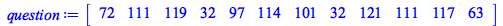 | > | question := Array("How are you?"); |