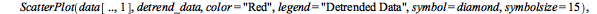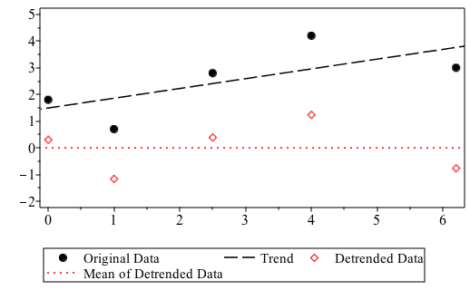It can be observed that from the plot of the data and the linear model that there is some upward trend. The Detrend command removes any trend from the data.