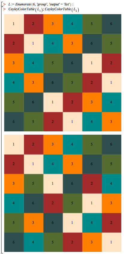 For example, compare symmetry in the Cayley tables of the commutative and non-commutative groups of order 6.
