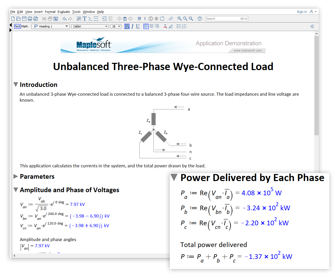 The built-in units system in Maple is used to define the load impedances and line voltage, in order to simplify the need for additional calculations the engineer might be required to perform.
