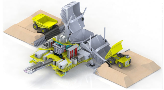 In the mining industry, mined ore gets transported by super-heavy duty trucks from the extraction site to a processing plant where it is crushed into smaller sizes. To avoid trucks travelling long distances, FLSmidth wanted to develop a Dual Truck Mobile Sizer (DTMS) that could receive materials from 2 trucks at once and be relocated when needed.