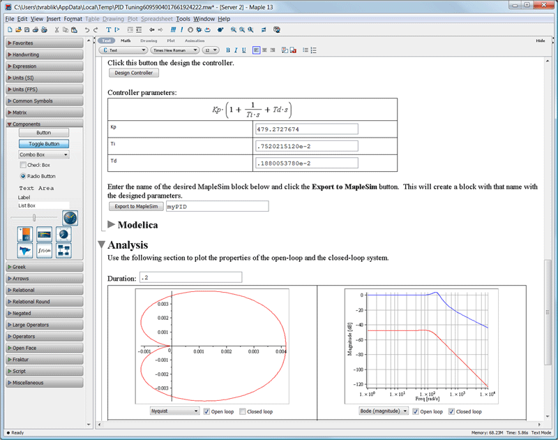 MapleSim Control Design Toolbox