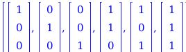 part1 := seq(seq(([0$i, 1$j, 0$(ell - i - j)], j = 1 .. ell - i)), i = 0 .. ell),