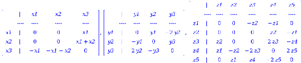 print⁡MultiplicationTable⁡Alg1,LieTable,MultiplicationTable⁡Alg2,LieTable,MultiplicationTable⁡Alg3,LieTable
