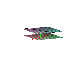 use plots in module() local p1,p2,p3,p4,p5,L; p1 := plot3d([13/3+(1/3)*x+(1/3)*y,-1+(1/3)*x+(1/3)*y],x=-10..10,y=-5..15): p2 := spacecurve([3-2*t, 2+5*t, 6+t], t = -2 .. 3, color = black, thickness = 3, numpoints = 2): p3 := spacecurve([5+4*s, 7+2*s, 3+2*s], s = -4 .. 2, color = red, thickness = 3, numpoints = 2): L := [21/11+(16/11)*m, 52/11+(16/11)*m, 72/11-(48/11)*m]: p4:=spacecurve(L,m=0..1,color=green,thickness=3,numpoints=2): p5:=display(p1,p2,p3,p4,axes=none,orientation=[50,55,-10],scaling=constrained); print(p5); end module: end use: