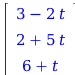 x=3−2 t,y=2+5 t,z=6+t and x=5+4 s,y=7+2 s,z=3+2 s