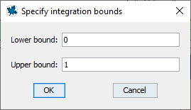 Context Panel: Constructions≻Definite Integral≻t (Complete dialog as per figure at the right.)