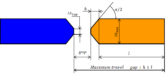 The tooth anlge α is calculated internally as: α = 2 tan−1th__bottom−th__top2 h