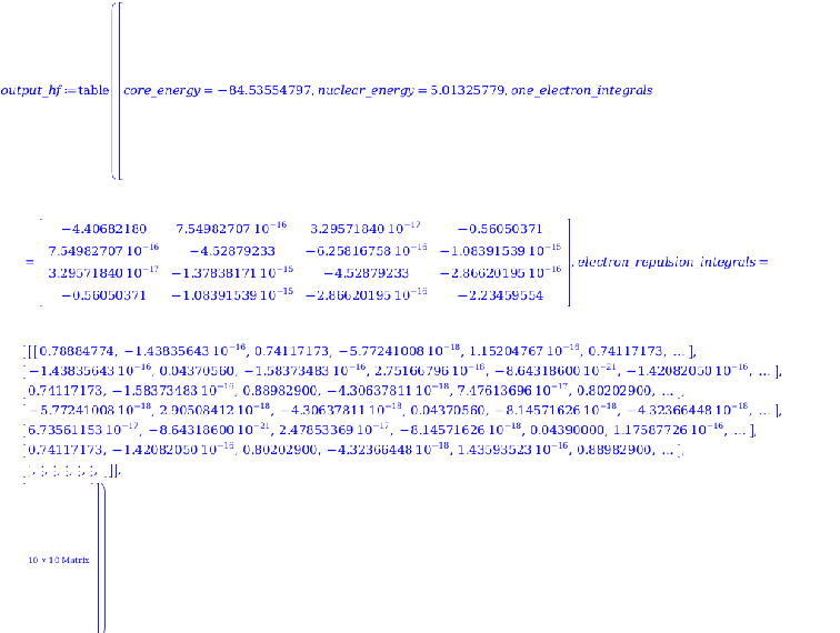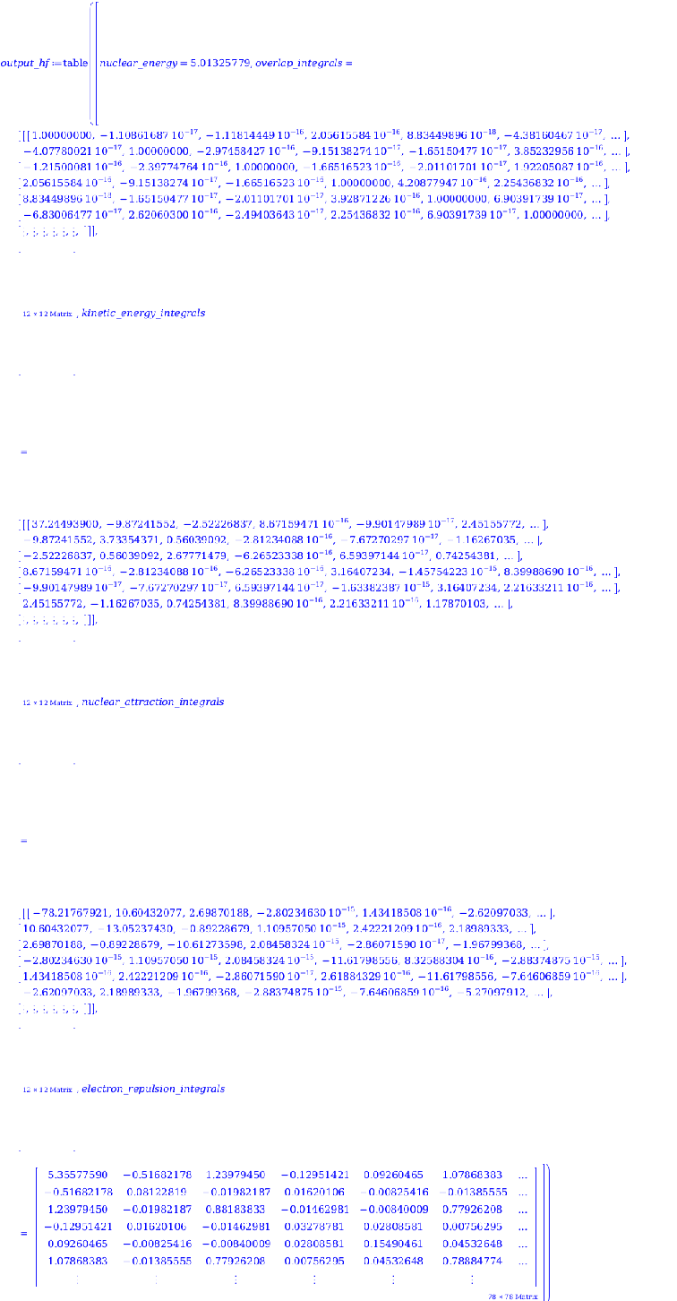 output_hf ≔ MOIntegralsmolecule,basis=dz;