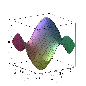 plot3d⁡sin⁡x+sin⁡y,x=0..2⁢π,y=0..2⁢π,axes=boxed