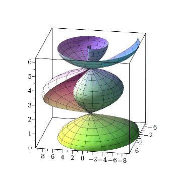 plot3d⁡θ,θ=0..8⁢π,φ=0..π,coords=spherical,style=wireframe