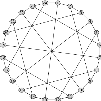 GGraph 1: an undirected graph with 24 vertices and 36 edges