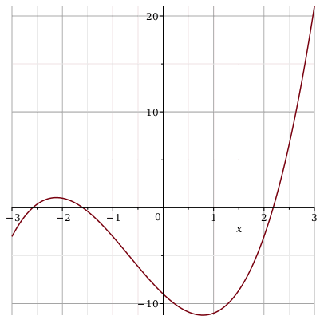 Graph x3+2⁢x2−5⁢x−9 on the interval −3,3, and estimate the coordinates of intercepts and extrema graphically.