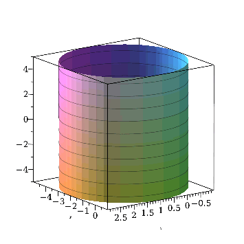 The level curves, drawn on the surface of the cylinder, are ellipses with semi-major axis 3 and semi-minor axis 2.