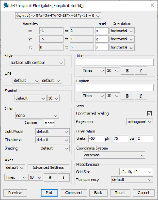 Context Panel: Plots≻3-D ImplicitPlot≻x, y, ? Style≻Surface Contour