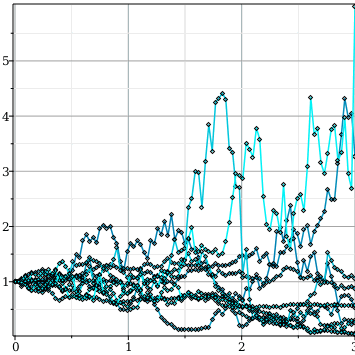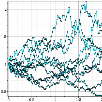 plotsdisplay⁡plot⁡W3,t=0..3,PathPlot⁡W1⁡t,t=0..3,timesteps=10,replications=10,thickness=3,axes=BOXED,gridlines=true
