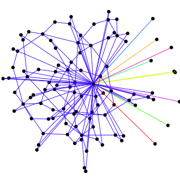 The graphs above typically have one large bi-connected component and several smaller ones that generally have degree 1. This can be visualized as follows for the first graph in the sequence.