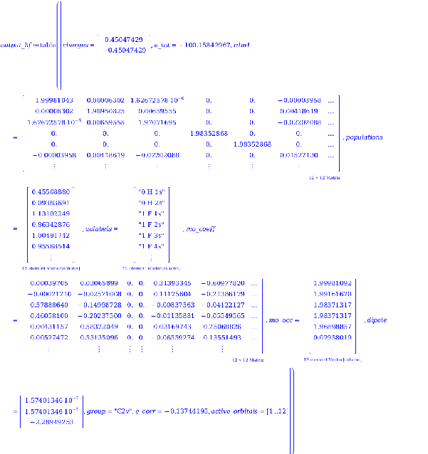output_hf ≔ Parametric2RDMmolecule, basis=dz;