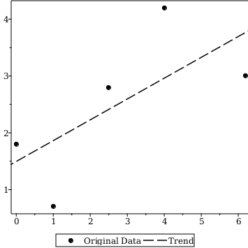plots:-displayScatterPlotdata,symbol=solidcircle,symbolsize=15,color=Black,legend=Original Data,plotlm,color=Black,legend=Trend,linestyle=dash,view=mindata..,10.1..maxdata..,1+0.1,mindata..,20.1..maxdata..,2+0.1