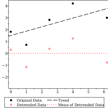 plots:-displayScatterPlotdata,color=Black,legend=Original Data,symbol=solidcircle,symbolsize=15,plotlm,color=Black,legend=Trend,linestyle=dash,ScatterPlotdata..,1,detrend_data,color=Red,legend=Detrended Data,symbol=diamond,symbolsize=15,plotMeandetrend_data,color=Red,legend=Mean of Detrended Data,linestyle=dot,view=mindata..,10.1..maxdata..,1+0.1,default