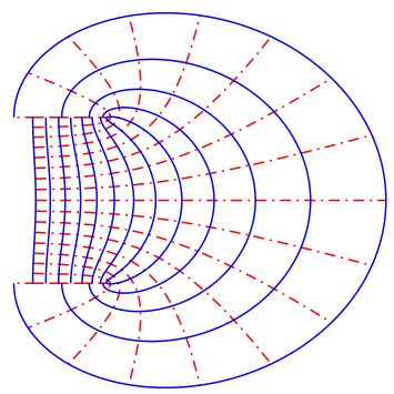 The plots[coordplot] function plots "graph paper" of the two dimensional coordinate systems currently supported in Maple. The 2-D plane is divided into a grid of lines of constant value, which are then mapped into the Cartesian plane by way of the coordinate transformation for the specified system coord. See coords for details of each of the coordinate systems available.