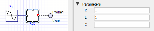 In addition to inputs and outputs, generated code may have user-modifiable parameters defined for it.  By default, not all parameters are selected to be modifiable in the exported code.  In general, the fewer parameters left modifiable, the less time it will take to generate the code and the faster the exported code will run.  By default, only parameters defined on the subsystem being exported are selected to be modifiable in the generated code.  For example, if generating code for the RLC subsystem in Figure 3, only the parameters R, L, and C will default to being modifiable in the exported code.