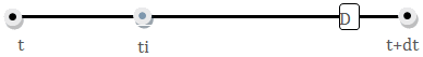 In this case, the events fired in the first intermediate step have resulted in a new zero-crossing occurring prior to the end of the step.  Assuming more than two intermediate steps are allowed, the algorithm will now take an internal step from ti to the approximated time of event D.