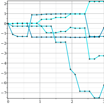 PathPlot⁡G⁡t,t=0..3,timesteps=100,replications=10,thickness=3,axes=BOXED,gridlines=true