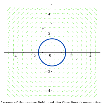 If output = plot, the default caption is Arrows of the vector field, and the flow line(s) emanating from the given initial point(s).