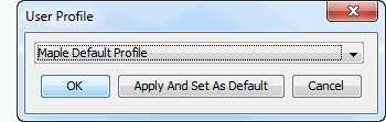The User Profile dialog box opens. The drop-down list contains the User Profiles that Maple found on your computer and a Custom User Profile option.