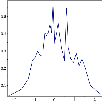 FrequencyPlot⁡C,range=−5..5,binwidth=FreedmanDiaconis