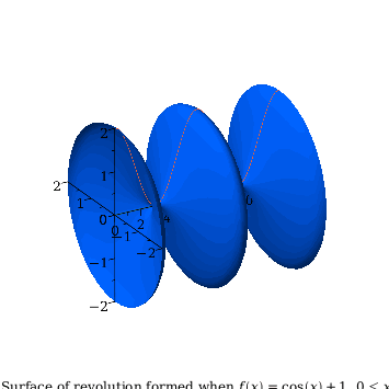SurfaceOfRevolutioncosx+1,x=0..4π,output=plot