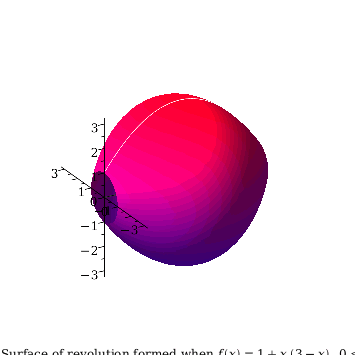 SurfaceOfRevolutionsinx+1,x=0..3,output=integral