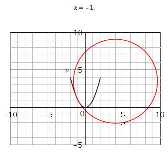 p1:=plots:-implicitplot([(x+4)^2+(y-7/2)^2=125/4,y=x^2],x=-10..2,y=-3..10,color=[red,black],gridrefine=2): p2:=plot([[1,1]],style=point,symbol=solidcircle,symbolsize=15,color=black): p3:=plot([[-4,7/2]],style=point,symbol=solidcircle,symbolsize=15,color=green): plots:-display(p1,p2,p3,scaling=constrained);